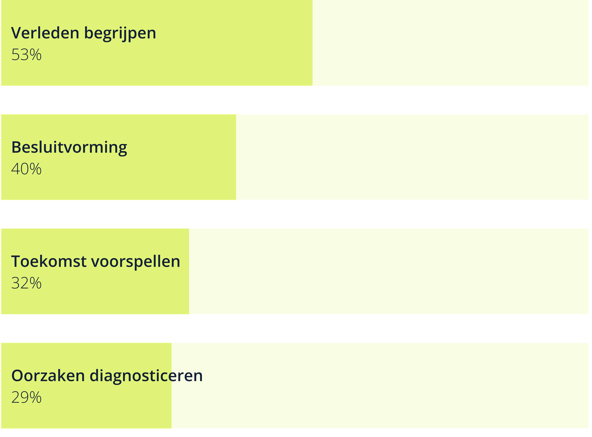 - Niveau 4 - Data-gedreven: beslissingen op basis van inzichten.