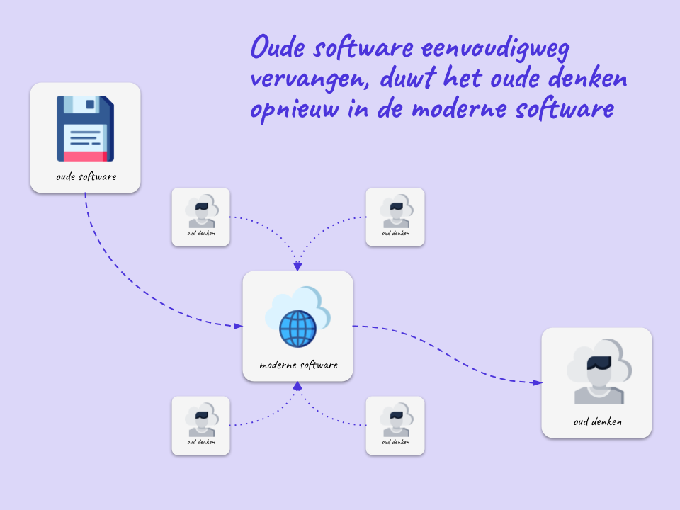 Een veelvoorkomende valkuil is dat het vervangen van software zonder de bijbehorende denkpatronen aan te passen leidt tot dezelfde problemen in een nieuwe jas. Het is cruciaal om zowel de software als de manier van werken en denken binnen de organisatie te vernieuwen.