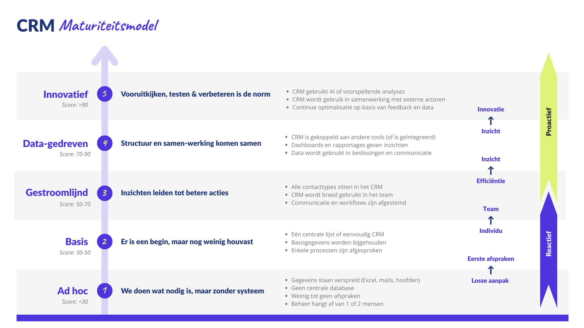 De CRM Maturiteitsindex is meer dan een score. Het is een routekaart. Je gebruikt hem om: